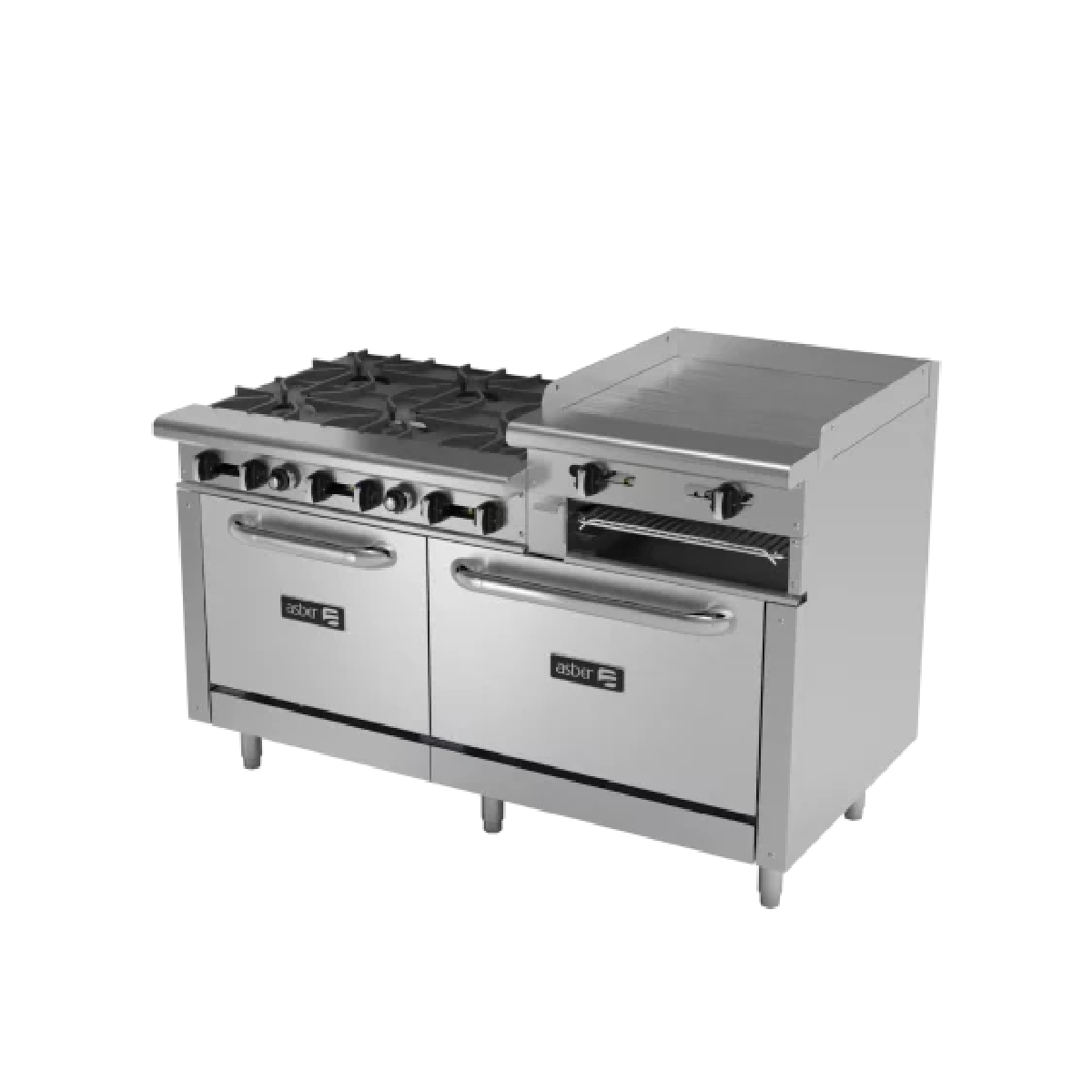 Asber AEMR-2-RG24-B6-60-H Estufa Combinada Con Parrilla, Plancha Con Gratinador Y Horno A Gas De 6 Fuegos Abiertos Acero Inoxidable